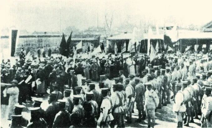 1926年3月18日,请愿群众在执政府门前与卫队对峙。 新华社发