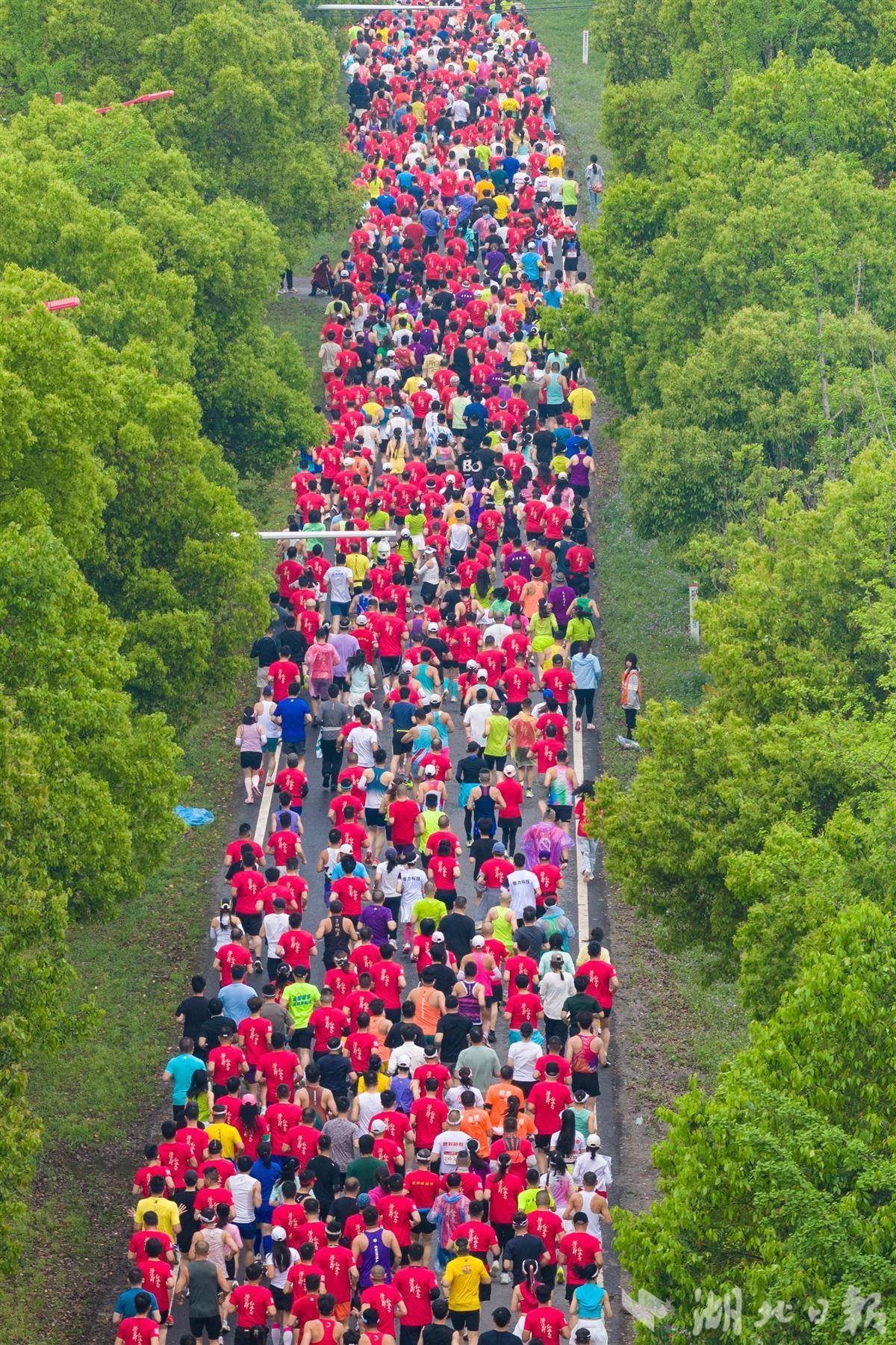4月12日上午,2026潜江半程马拉松鸣枪开跑。6000名跑者奔赴赛场,穿行返湾湖国家湿地公园,漫步水杉廊道、相伴湖光鹭影,在古云梦泽画卷里迎风奔跑!