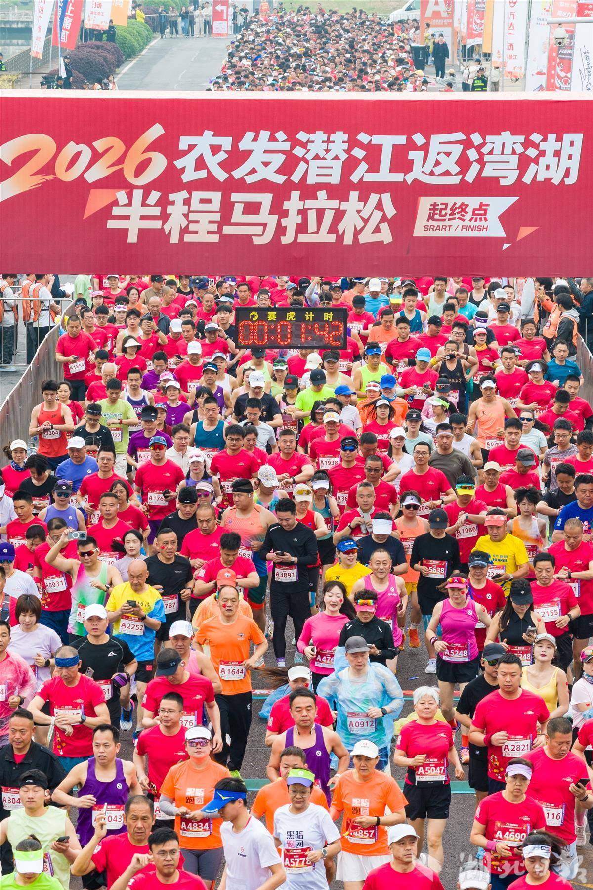 4月12日上午,潜江半马鸣枪开跑。(湖北日报全媒记者 任勇 摄)