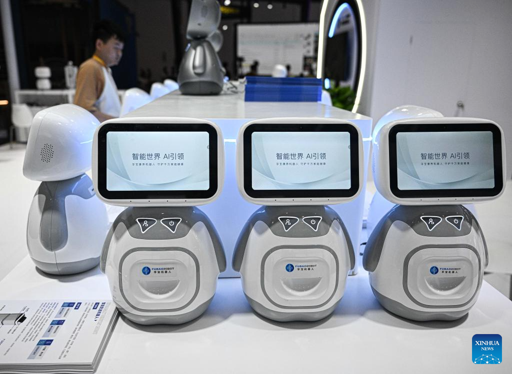 Health and companionship robots are pictured at the Hainan International Convention and Exhibition Center, the main venue for the upcoming sixth China International Consumer Products Expo (CICPE), in Haikou, south China's Hainan Province, April 11, 2026. Scheduled to take place in south China's Hainan Province from April 13 to 18, this expo will see the participation of more than 3,400 brands from over 60 countries and regions. (Xinhua/Pu Xiaoxu)