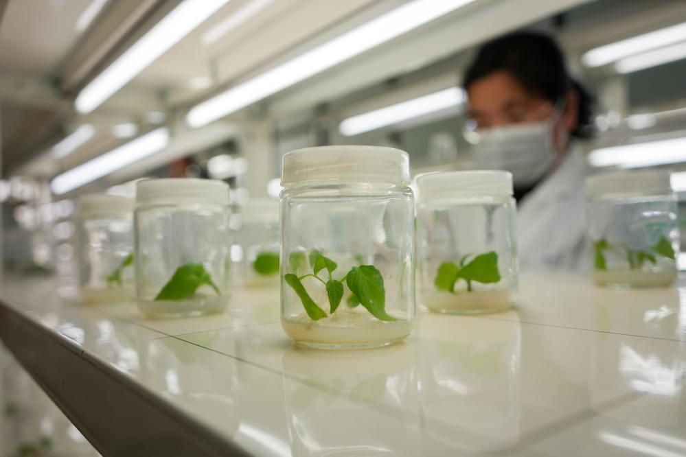 4月1日,寿光蔬菜种质资源库的工作人员在组织培养室工作。