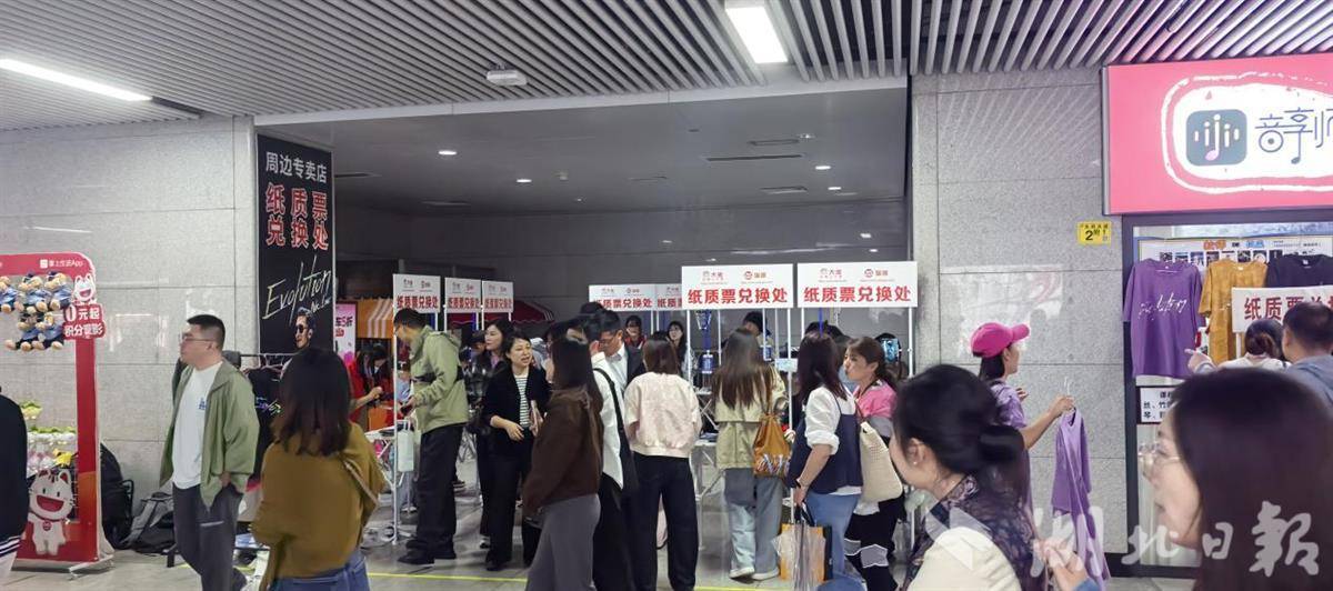 4月11日,歌迷在地铁站打卡。(湖北日报全媒记者 甄子萱 摄)
