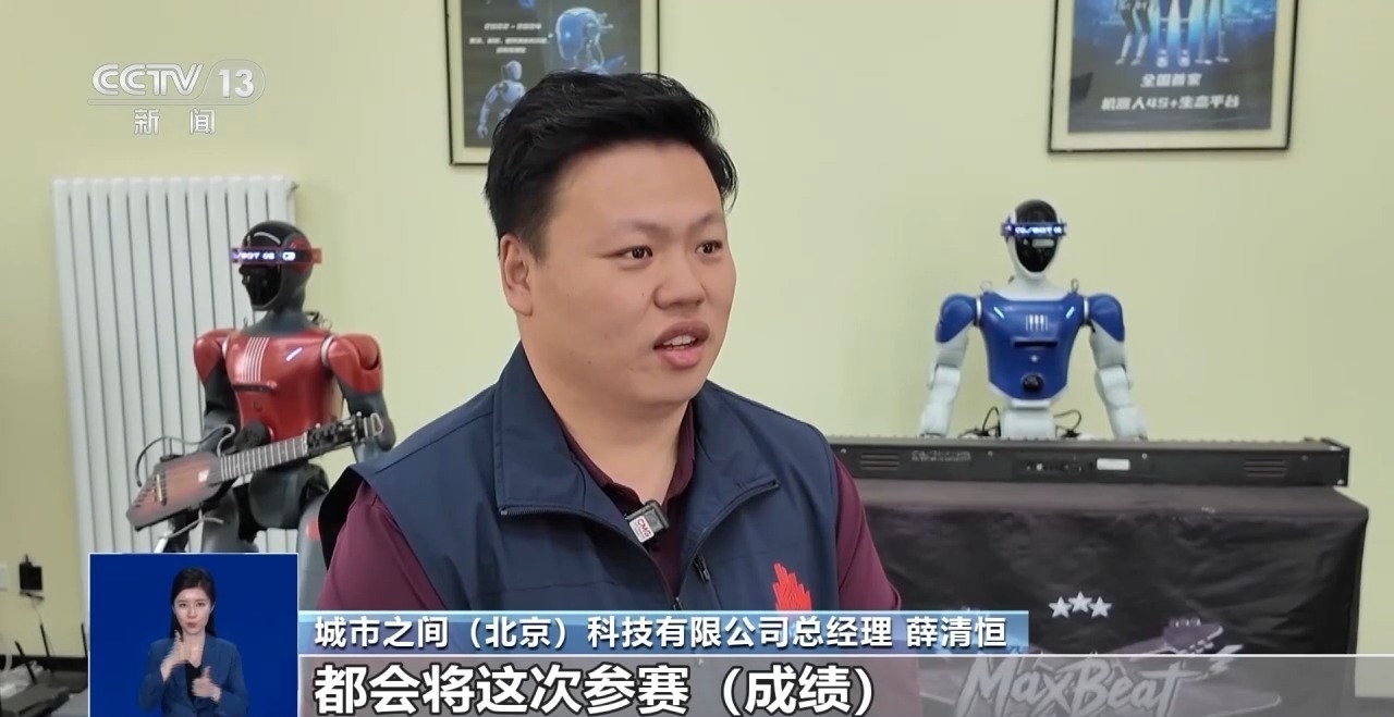 总台记者 张河运:报名参加半程马拉松赛和勇士挑战赛之外,城市之间科技队还承担着本次赛事开闭幕式展演活动的任务。人形机器人乐队正在为开闭幕式展演紧张彩排训练。
