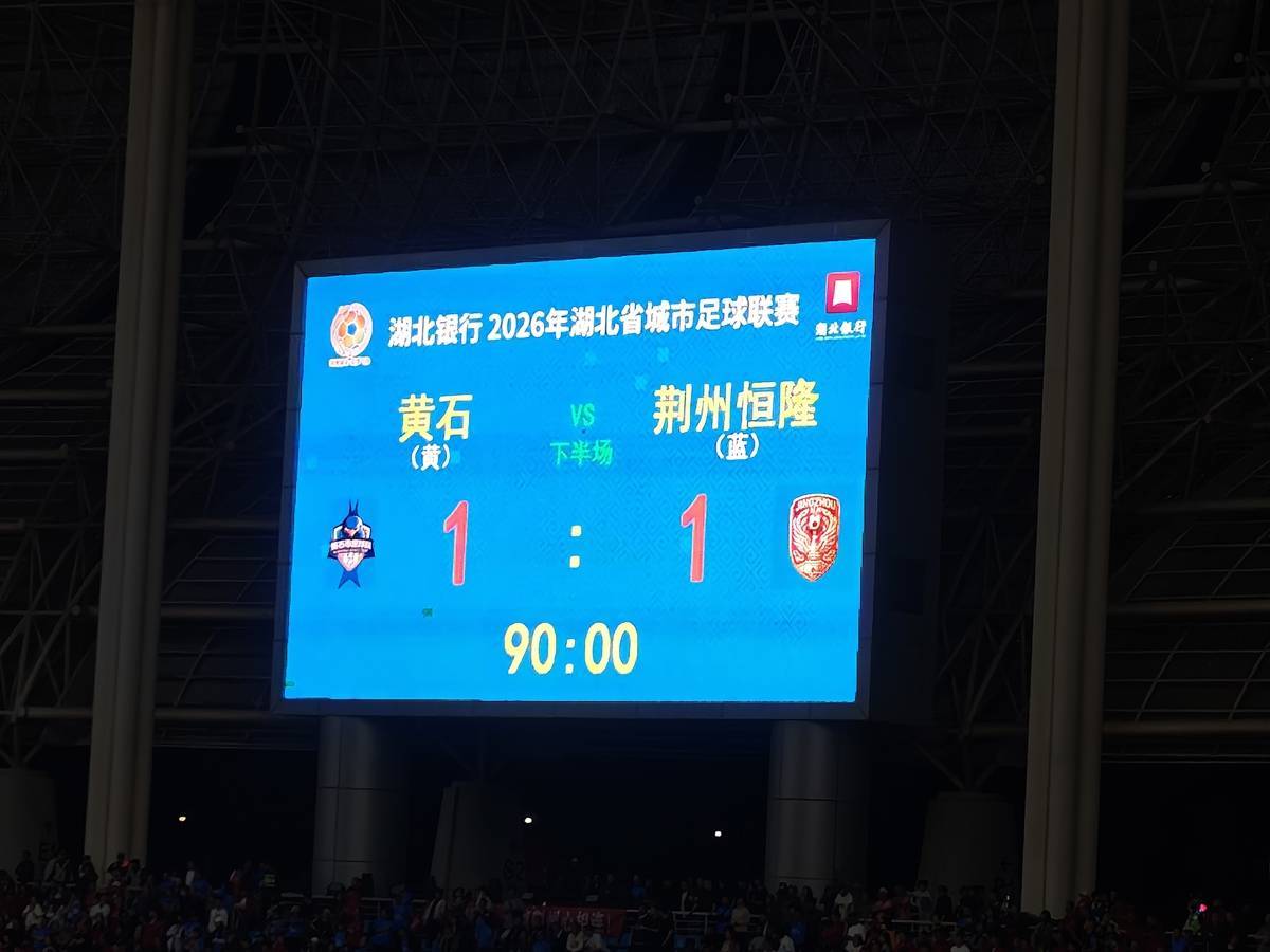 易边再战,黄石队连换两人,力争拿下首战。荆州队则以高位逼抢寻求对手的破绽。第53分钟,荆州队利用对方后场发边线球的失误,迅速反击,由江尔晗在禁区内突施冷箭得分,打破场上僵局。他的这粒进球,也是楚超历史上首球。0比1落后,全场黄石球迷用山呼海啸般的加油声助力主队吹响反击的号角。第77分钟,黄石队利用前场角球所制造的混战,由童威在大禁区弧顶处远射得分,将比分扳成1比1平。这粒进球也点燃了奥体中心,“人浪”在看台流动,黄石队一波又一波的进攻,将荆州队压制在半场。可惜的是,黄石队未能再度将有威胁的进攻化作进球。最终,“楚超”揭幕战以黄石队1比1战平荆州队而告终。