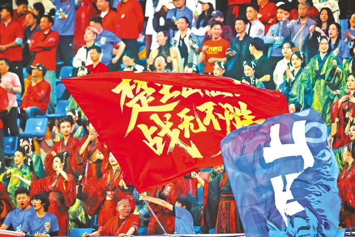 江西九江球迷为主队呐喊助威。