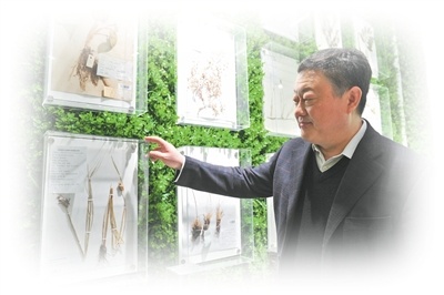 姜明在介绍采自黑土地的植物标本。受访者供图