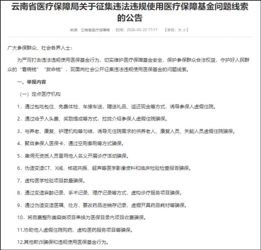 云南省医疗保障局关于征集问题线索的公告