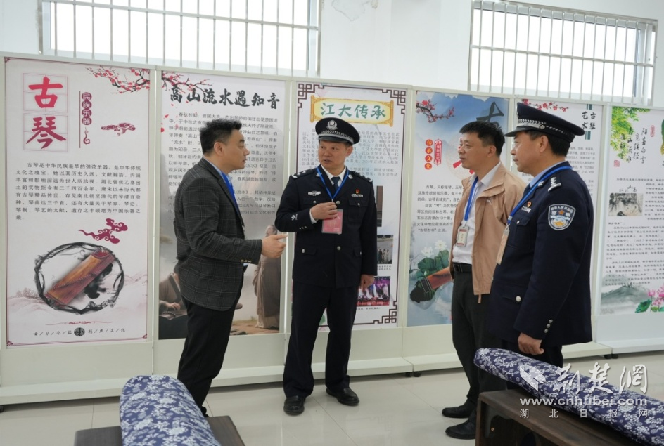 巡考间隙,夏良豪副局长与余刚主任在何全军监狱长的陪同下参观了琴断口监狱罪犯教育改造软环境的成果展示。在非遗文化古琴班,何全军监狱长着重介绍了 “知音文化”的丰富内涵和琴断口监狱打造“知音文化”品牌的各项措施。教育局领导一边饶有兴趣地浏览宣传展板,一边对琴断口监狱不断探索、丰富、拓展罪犯教育改造手段的做法给予高度评价。