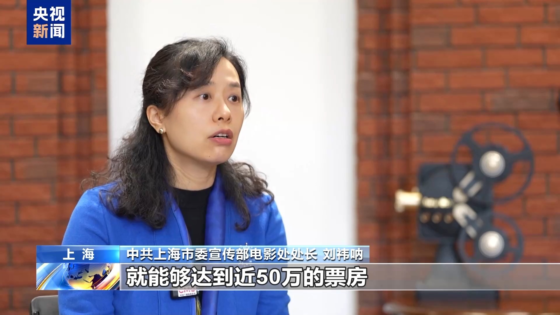 中共上海市委宣传部电影处处长 刘祎呐:我们现在最高峰的一场能够达到近50万的票房,也让更多的片方主创有信心到上海。更重要的是他们不仅在这能收获票房,还能收获好口碑和好传播,还能收获很多共鸣和感动。