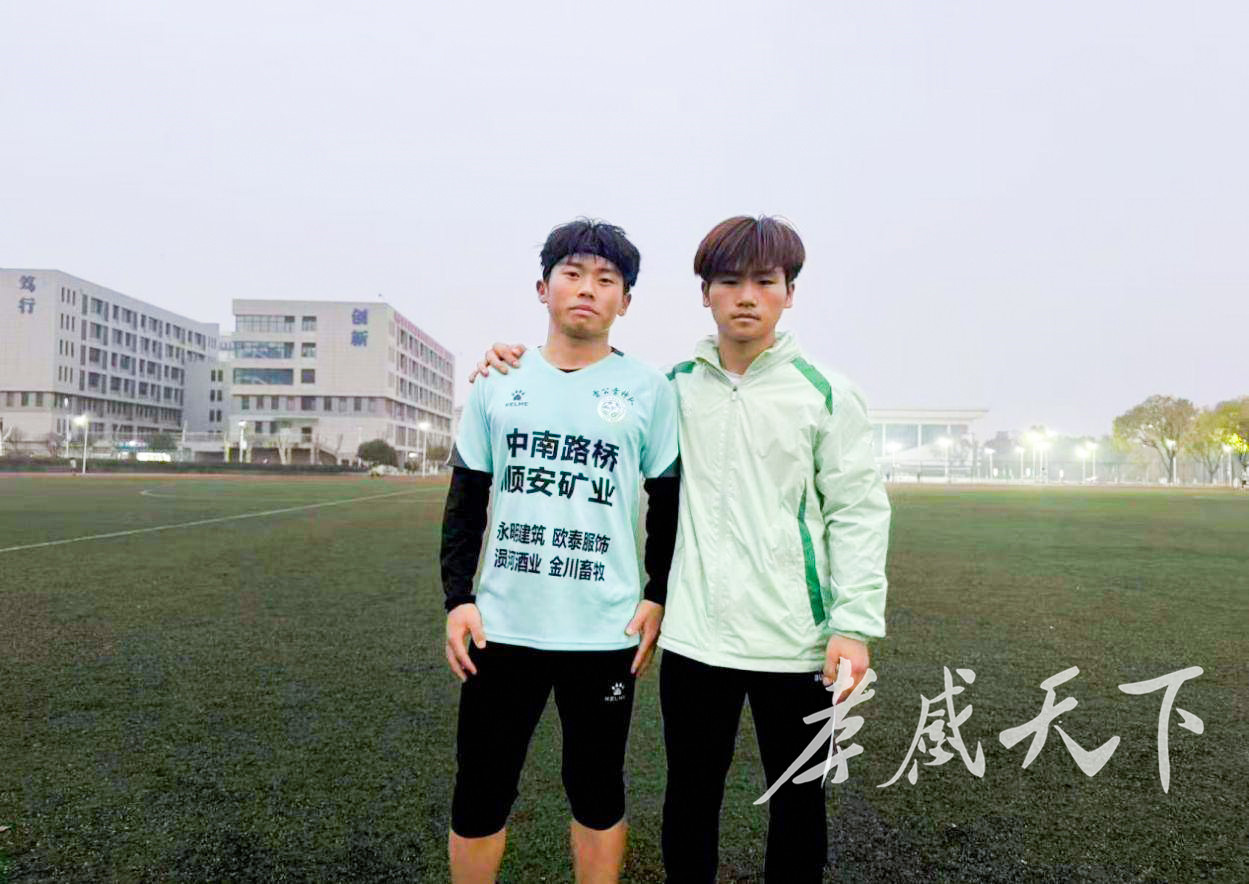 雷公雷神队的后防线上,17号张震与18号余秉喆,是球迷口中的“后方双子星”。这对同门师兄弟,都是雷公镇人,如今同在长江工程职业技术学院读书,去年一起加入了家乡的球队,成位后防的固定搭档。