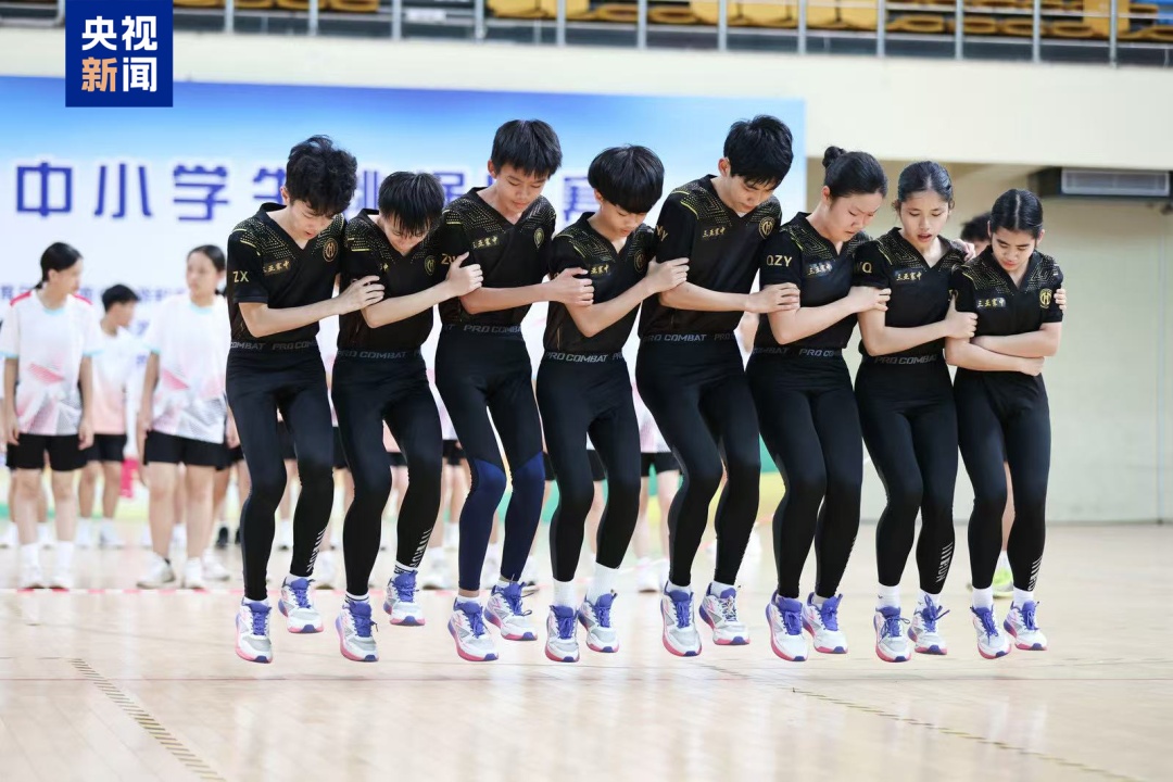 一支参赛队在“十人同步跳”项目中