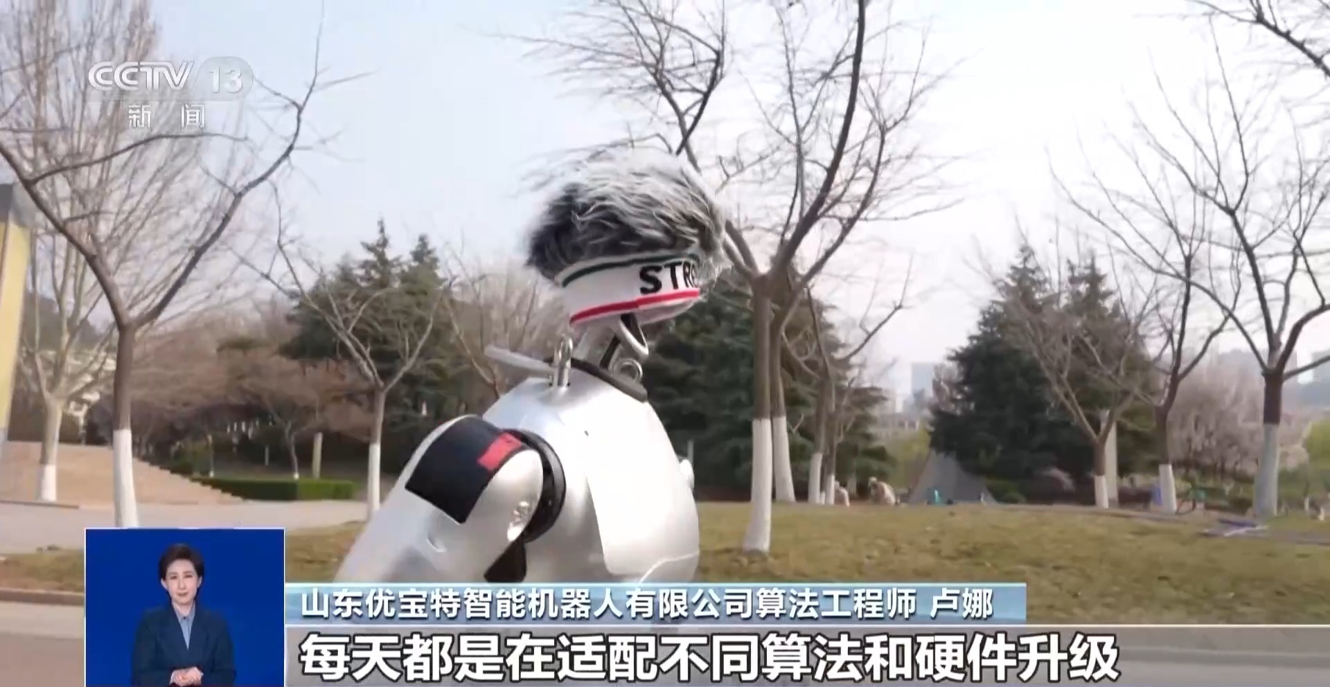 山东优宝特智能机器人有限公司算法工程师 卢娜:目前,每天有不同的机器人去室外跑道测试,根据它记录的数据再去完善算法、优化运动性能,每天都是在适配不同的算法和硬件升级。