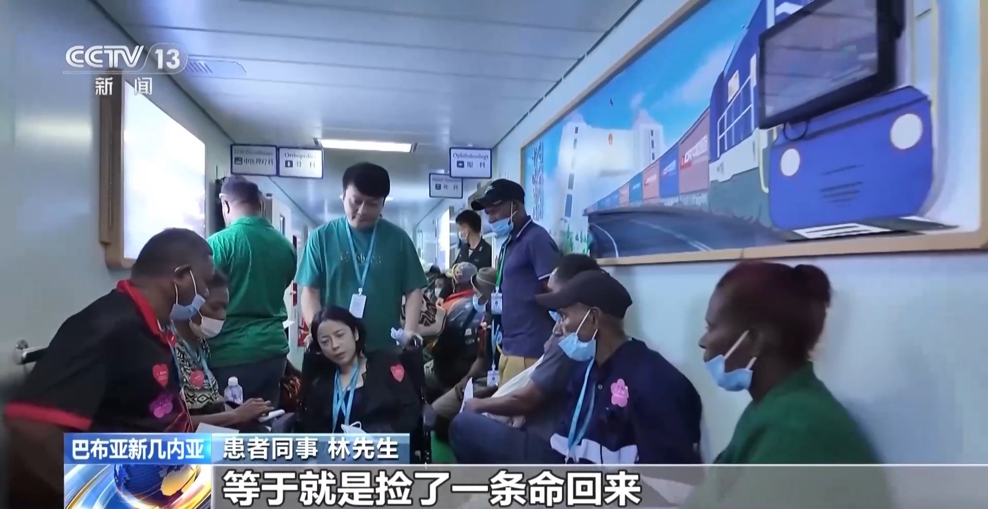 患者同事 林先生:速度很快,我们到医院船的时候直接上来了。绿色通道各方面都做得很及时,等于就是捡了一条命回来。