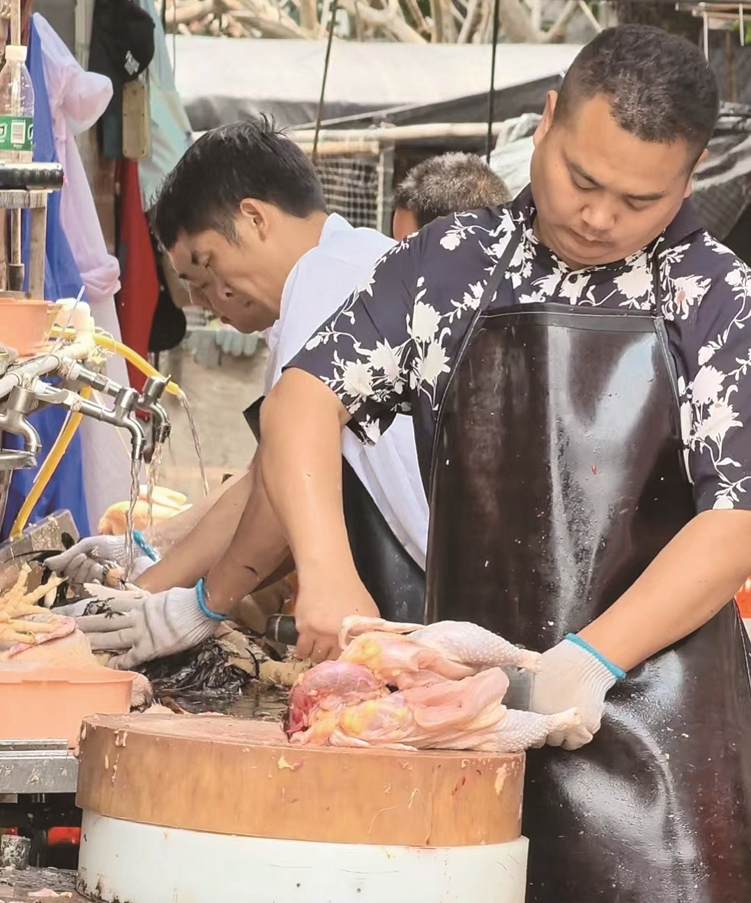 与莫叔相熟、在附近做钢架生意的陈青(化名),临时来莫氏鸡煲店帮工四五天了。“主要是帮着拔毛、剁鸡,一干就是十五六个小时,一天下来手和脚都是麻的。”陈青说。