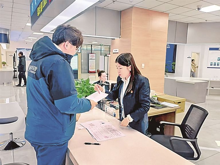 大连自助网办区工作人员为群众现场指导道路运输许可证线上申请办理。大连新闻传媒集团供图
