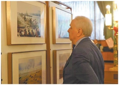 俄罗斯观众参观在俄罗斯首都莫斯科举行的“铭记历史 开创未来——纪念中国人民抗日战争暨世界反法西斯战争胜利80周年图片展”。本报记者 肖新新 摄