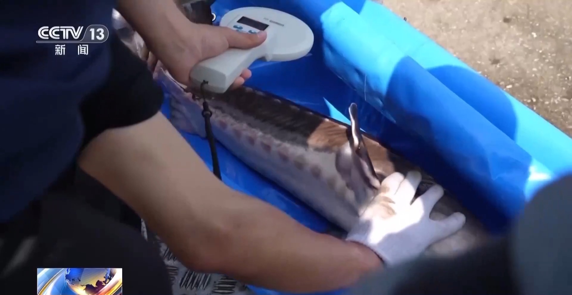 现场,研究人员正分批次向长江投放长江鲟成年亲鱼,其中8条亲鱼携带了国内自主知识产权、完全自主研发的超声波小型信标。该信标工作时长可达一年半,可完整覆盖明年长江鲟的繁殖季。再加上今年试验中投放的信标亲鱼,总共15个信标将进一步扩大观测数据量。