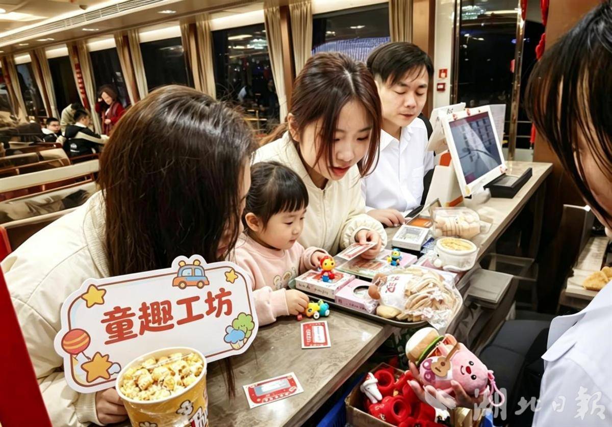 苗家码头的“利记号”“钟子期号”等游船变身为亲子主题乐园,游客可参与游戏攒积分兑换奖品,体验专属机位拍立得服务,还可参与非遗手工DIY和趣味玩偶互动等活动。