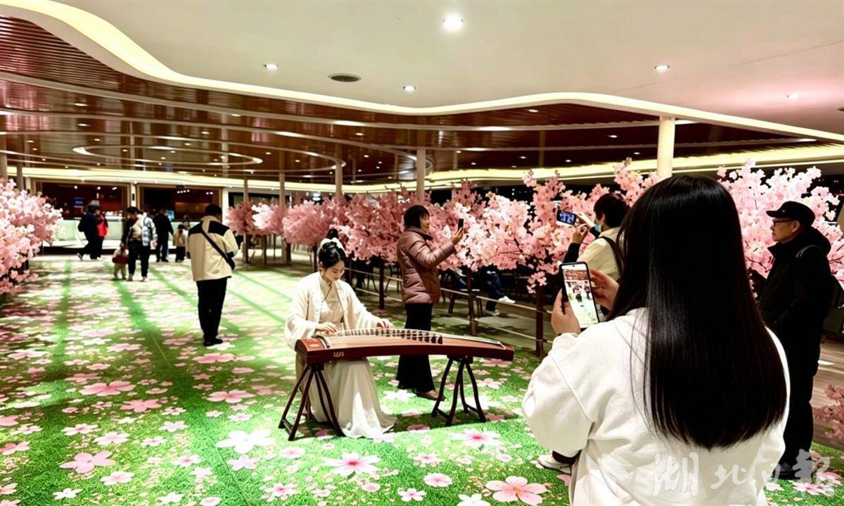 假期期间,“江汉揽胜”夜游专航将带领游客在长江上观赏“一桥两山”的璀璨夜景。各码头游船分别设置了不同主题的互动体验活动。红巷码头的“两江晴川”游船上设有“游戏掌柜”邀游客对战闯关,赢取虚拟货币兑换礼品;游船内布置有樱花大道,供游客凭栏远眺江景、拍照留念;“香道侍女”与“茶博士”提供香道雅集和品茗服务。
