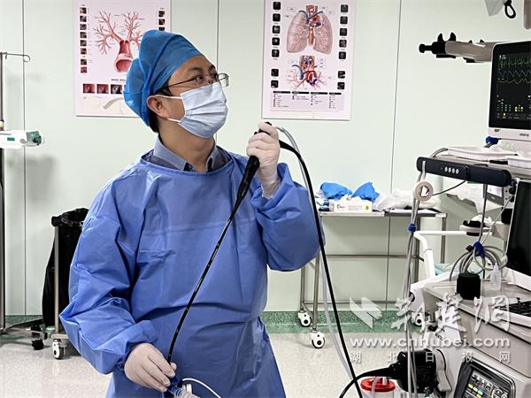 呼吸与危重症医学科专家为患者进行支气管镜下冷冻肺活检。通讯员供图