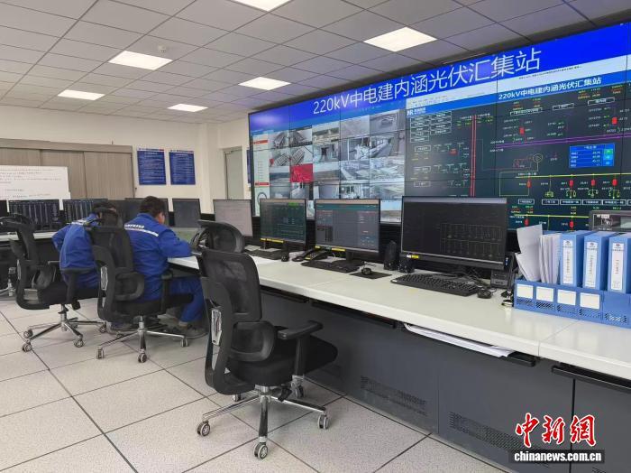 图为中电建25万千瓦光伏治沙示范区内涵光伏汇集站。张家伟 摄