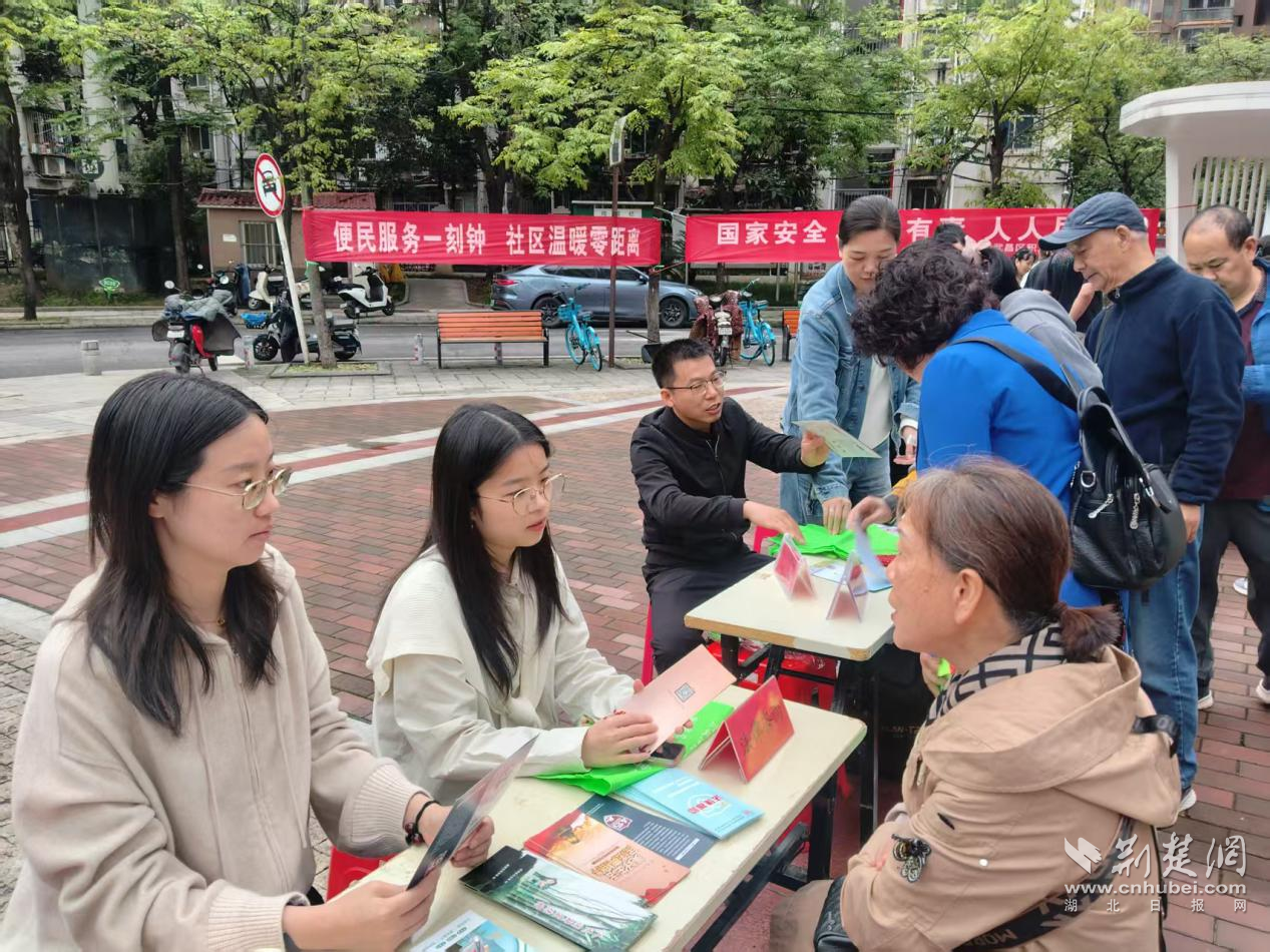 活动现场,湖北省中医院专家团队为居民提供健康咨询和急救知识宣教,将公共卫生安全融入健康服务中;光大银行工作人员同步开展反诈宣传,通过真实案例剖析电信诈骗、金融诈骗的常见套路,提醒居民守护好“钱袋子”。多部门从不同维度向居民传递法治理念,引导群众认识到国家安全涵盖政治安全、国土安全、经济安全、网络安全、生物安全等多个领域,部门联动共筑国家安全防线。