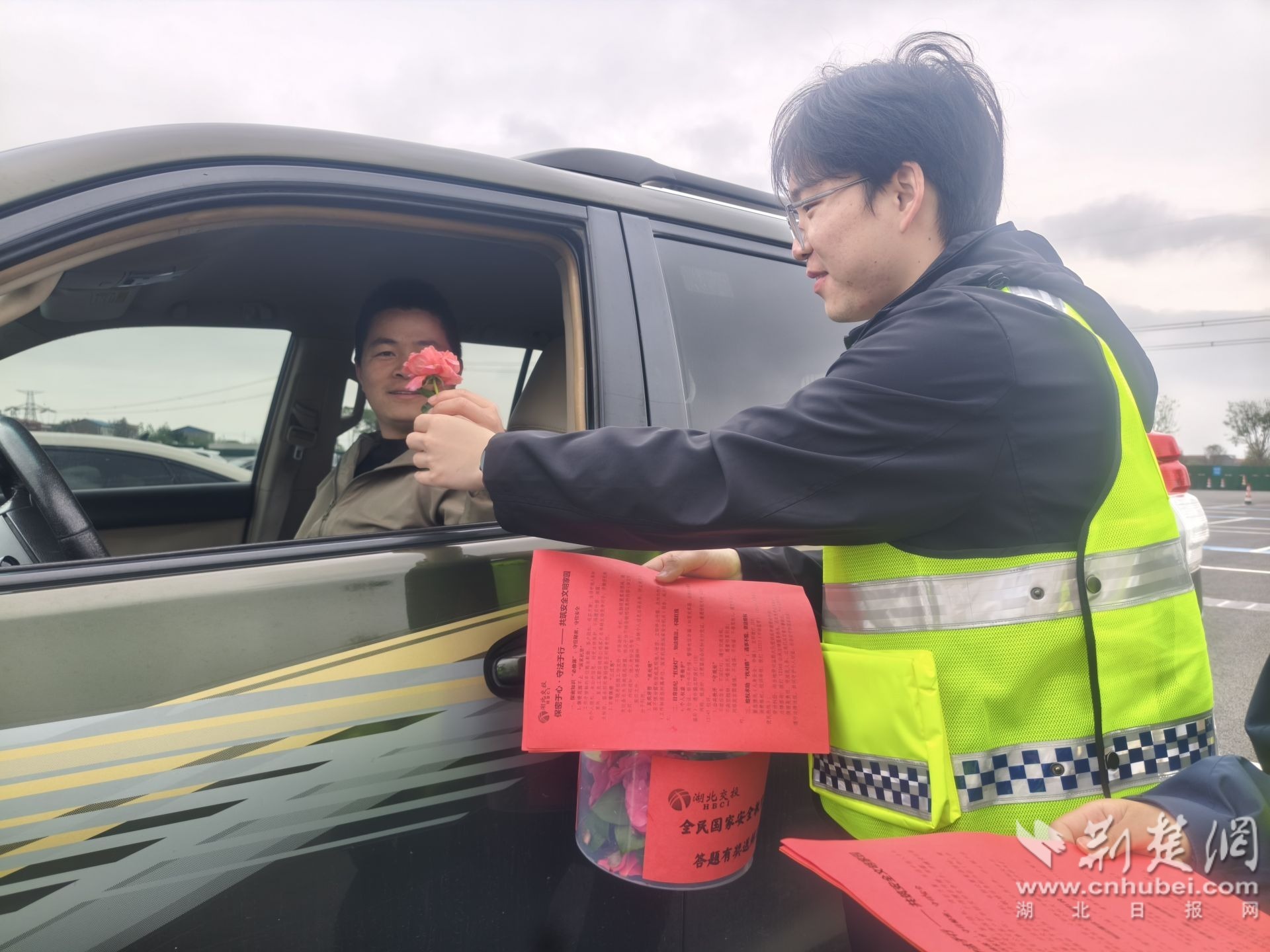 “这个山茶花太特别了!本来只是歇个脚,没想到还学到了实用的安全知识。”在孝感服务区宣传点,来自武汉的货车司机王师傅拿着刚领到的山茶花,认真翻阅着宣传单页。工作人员把保密知识、安全防范要点讲得绘声绘色,吸引不少司乘们驻足参与。