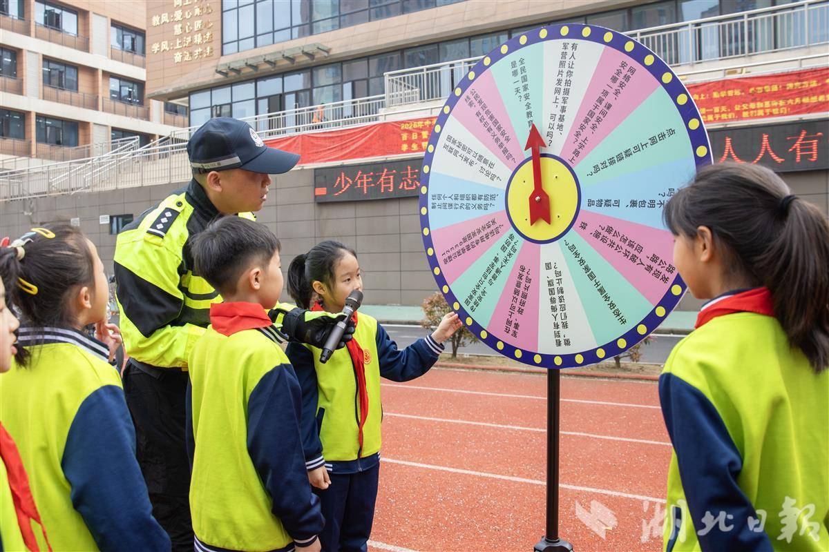 民警正在通过知识转盘给学生们普及国家安全知识。