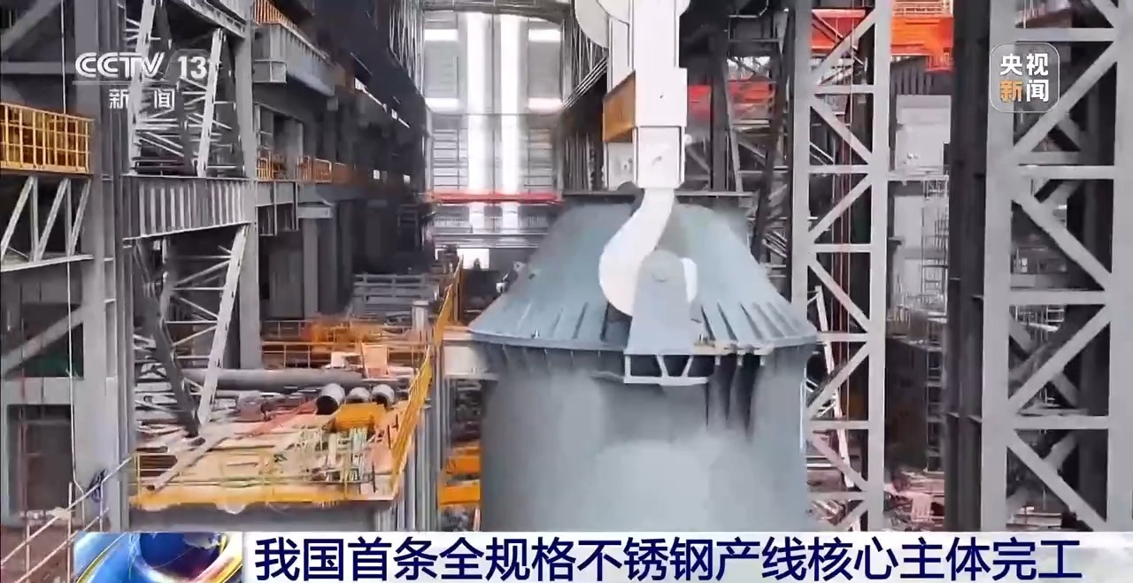 今天(14日),我国首条可以同时生产最薄和最厚两种低碳高端不锈钢产品的智能制造柔性产线核心主体正式完工。