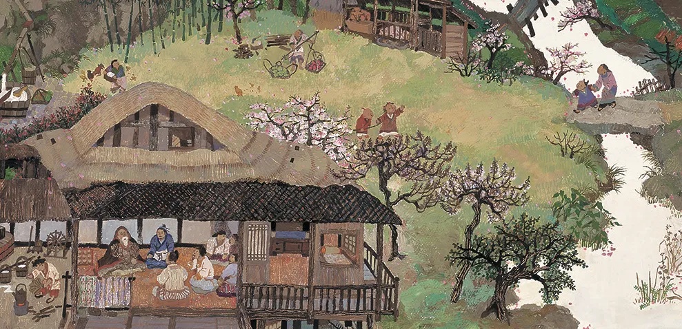 她画《晒龙袍的六月六》,取材自土家族的传统节日。画面颜色很好看,热闹喜庆的气息扑面而来。