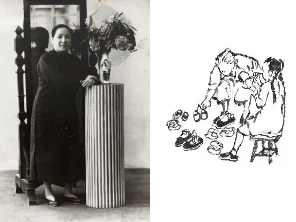 △蔡皋的外婆和蔡皋根据回忆所画的“帮外婆纳鞋底”