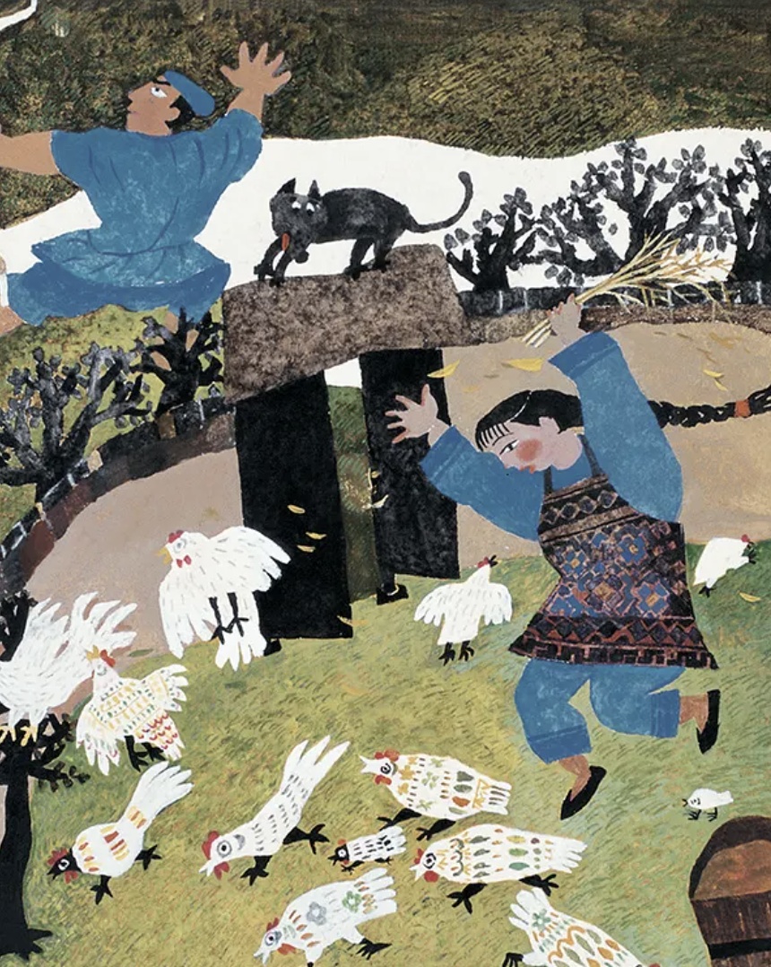 蔡皋的艺术创作极具多元性与融合力,她的作品深深扎根中华传统文化,以水墨晕染的东方意境为底色,融入质朴鲜活的民间美学,更以温暖治愈的儿童视角为核心,巧妙重构民间传说、经典文学与生活日常。