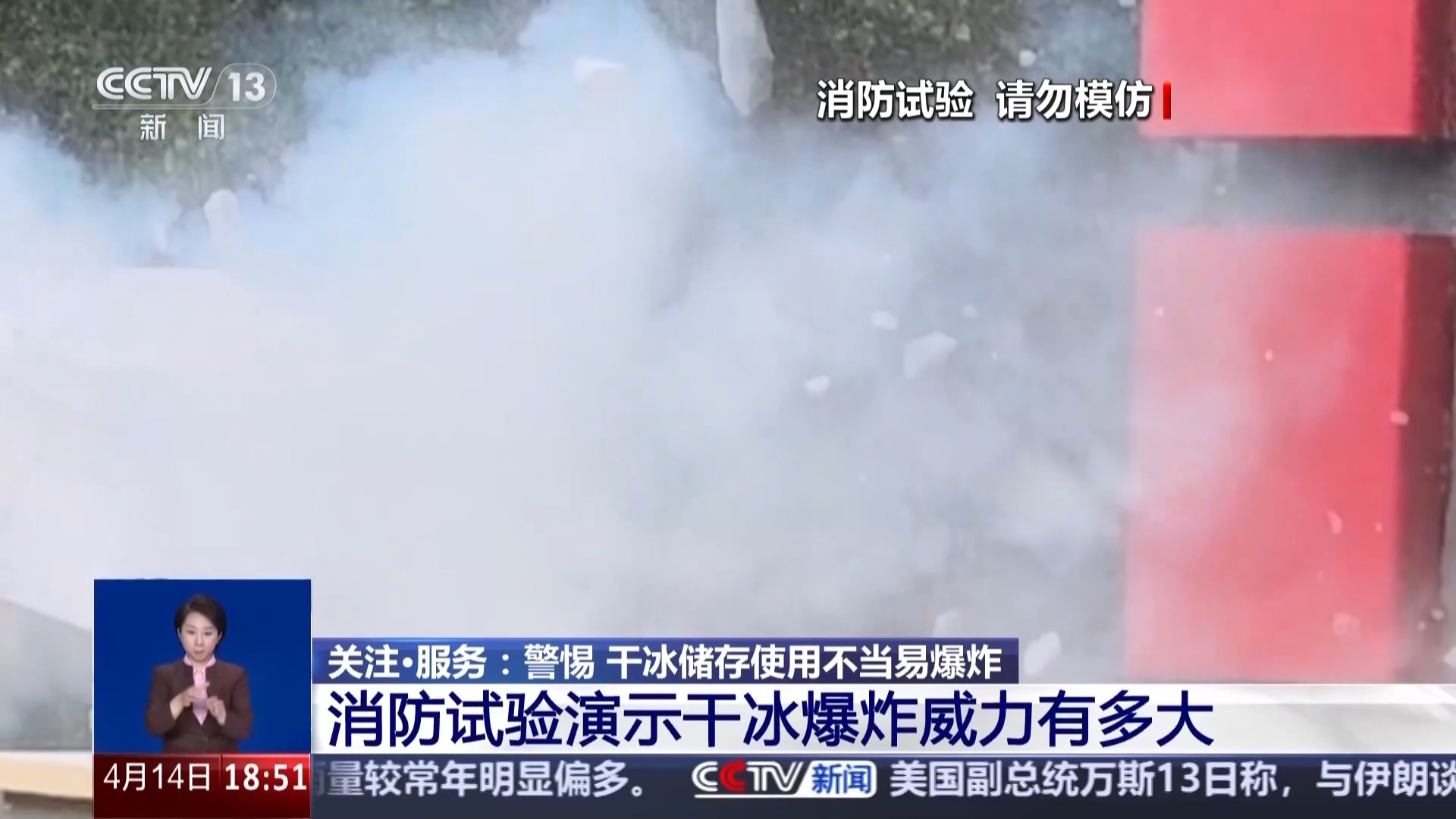 当会产生巨大压力的干冰遇上密闭容器,究竟会爆发出多大的破坏力?消防员通过一组试验,直观展示其中的危险。