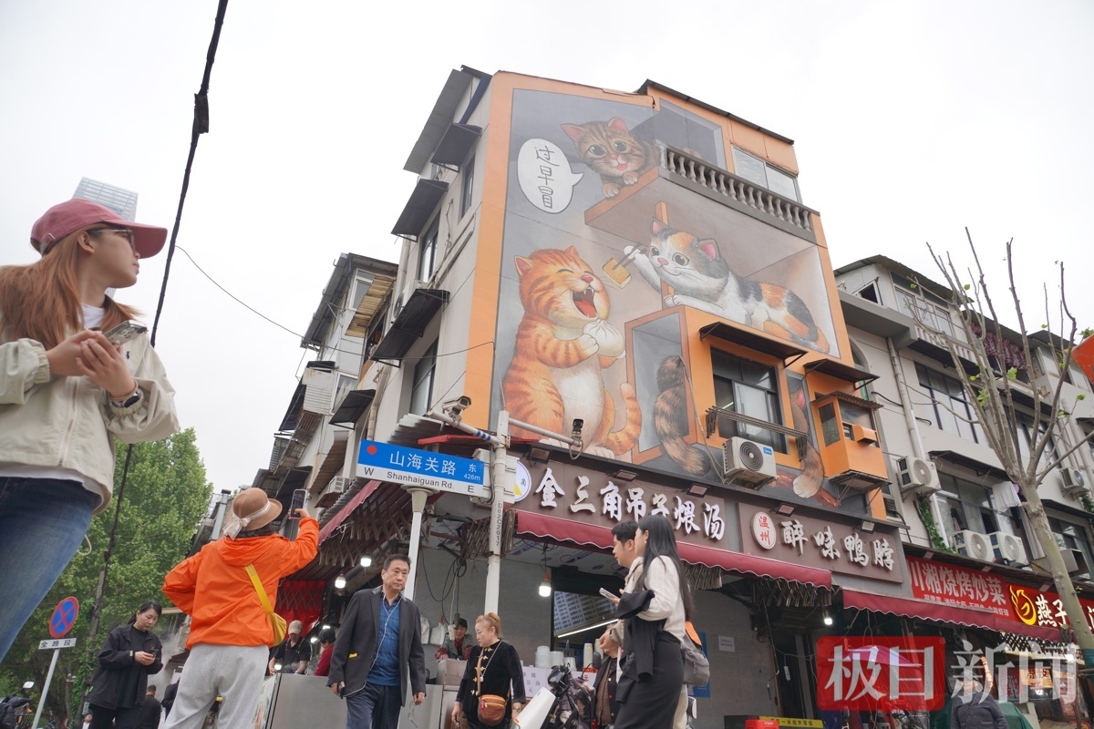 4月14日,武汉著名“过早圣地”山海关路悄悄上新了四面巨型墙绘,总面积达400平方米,画的全是猫。主创张浩透露,这组墙绘从月初开始绘制,耗时仅10天左右,这组萌趣墙绘已经吸引不少路人拍照打卡。
