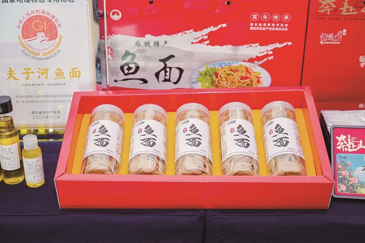 场外同步设置的麻城非遗、文创、地标优品、旅游四大展区,成为人气最旺的“打卡地”。麻城肉糕软糯鲜香,木子店老米酒醇厚甘甜,菊花茶清润入心——地道美食供嘉宾现场品尝;麻城剪纸、竹编、钩编等非遗技艺现场展示;龟峰山、孝感乡文化园文创产品新颖别致,吸引众多与会者驻足体验、洽谈。