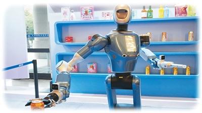 推介会会场外,服务型机器人将湖北风味食品递送给与会嘉宾。本报记者 陈子涵 摄