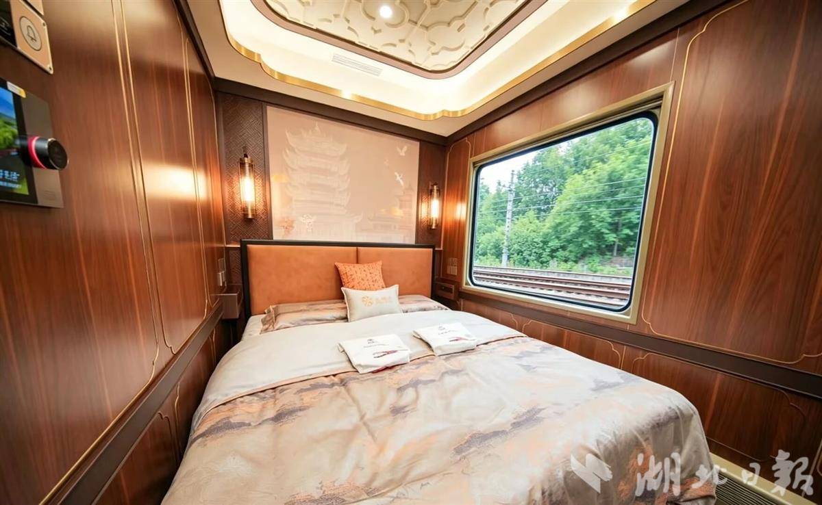 车上为酒店式客房,提供2至4人间,配有专属管家;床铺加宽,有隐私拉帘和SOS紧急按钮,对“银发族”很友好。全车覆盖WiFi,搭载智能交互屏和AI管家,还设了品茗区、文化社交区、音乐表演区、棋牌间四个功能区。