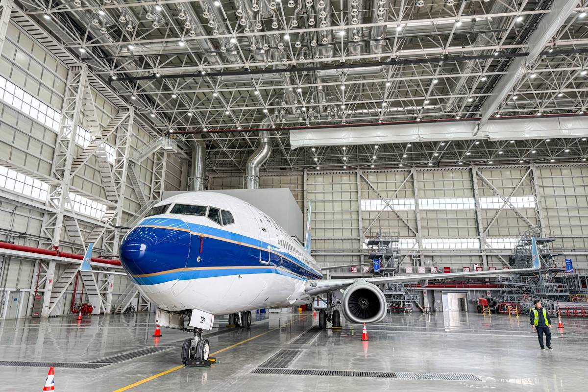 南航湖北基地喷漆机库可同时容纳两架窄体机或单架宽体机作业,配备先进环保处理系统,年服务能力达60架次。