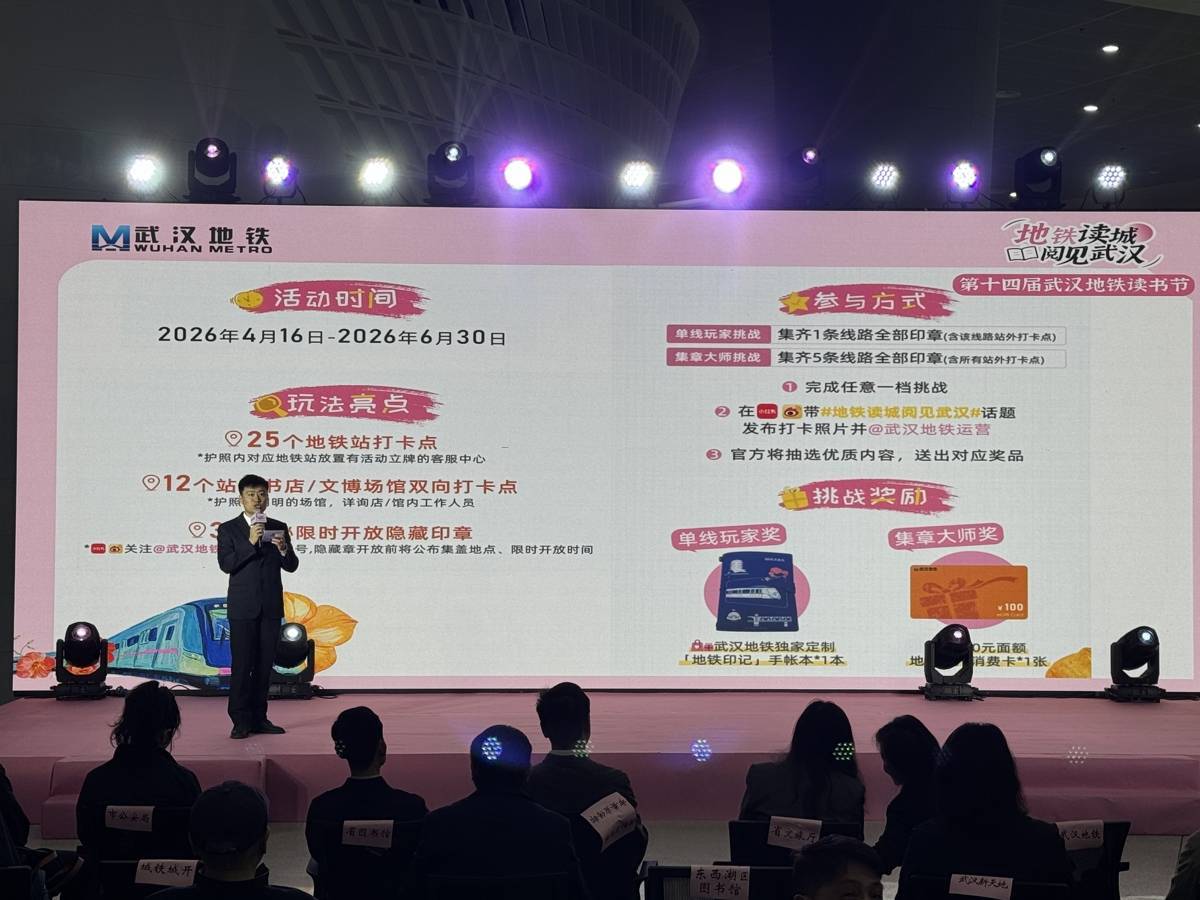 湖北日报讯(记者杨千帆、通讯员黄彦、李丹)4月15日上午,光谷广场地铁站大厅里比平日更热闹些。以“打开你的城市之书”为主题的第十四届地铁读书节在这里启动。站厅一角搭起了舞台,旁边摆着集章打卡台和书香市集,让不少乘客好奇地停下脚步。