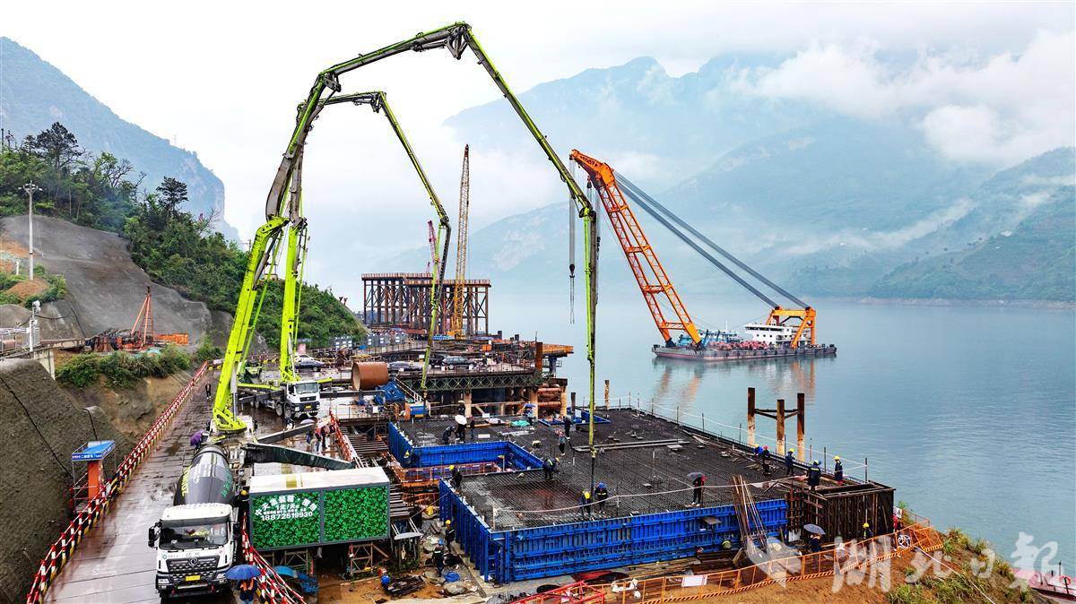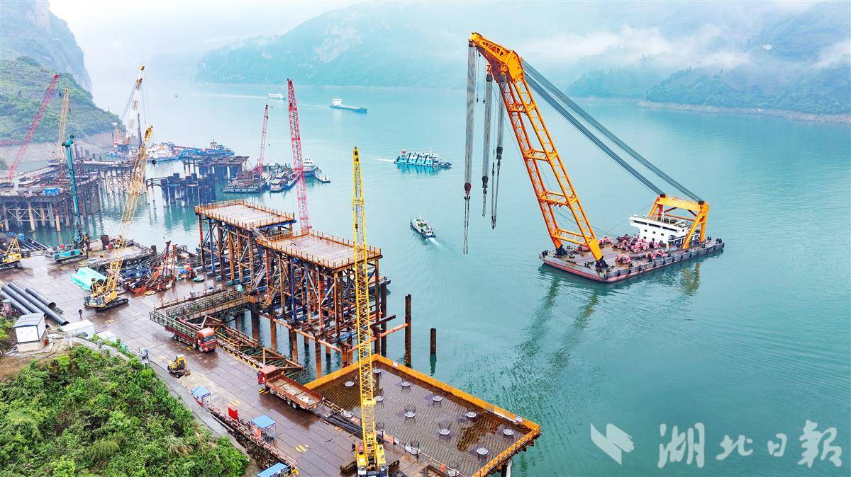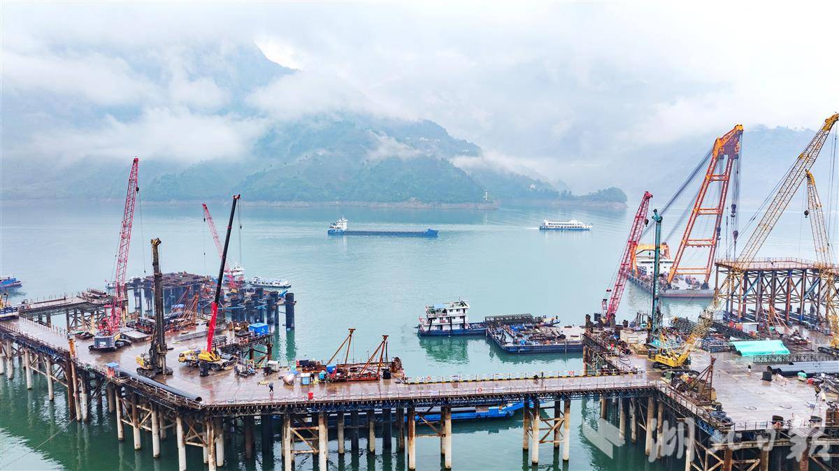 秭归县三峡枢纽江南成品油翻坝项目坝上码头工程施工现场,一派热火朝天的繁忙景象。