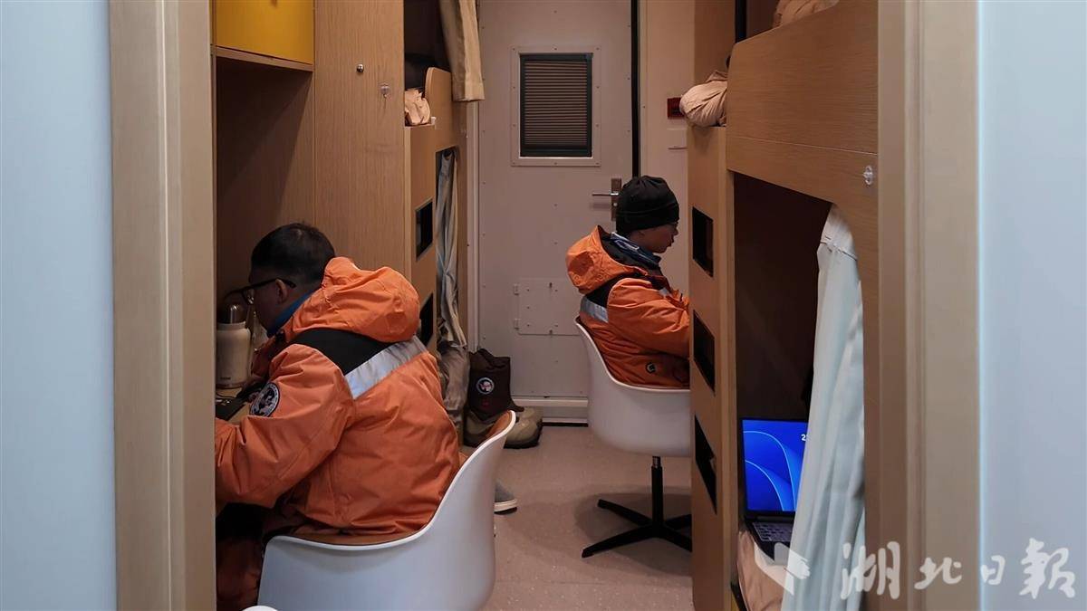 舱壁是专门设计的,保温系数比国内寒冷A区的标准还要高很多。“以前的舱,密封性不是特别好,睡下铺的人冷,要开电热毯、盖被子,热风往上跑,睡上铺的人又觉得热。”闵东说,极地舱装有新风系统,让室内空气循环起来,体感温度均匀。在零下40℃的野外,室内气温维持在18到22℃。