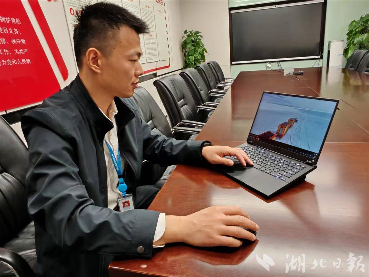 4月15日,闵东展示极地舱视频。(湖北日报全媒记者戴文辉摄)