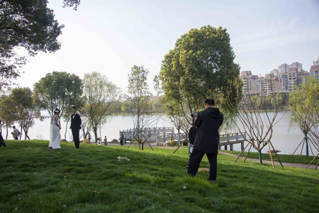 在东洋澜湖湿地公园莲花山区域,这里的施工虽处于收尾与完善阶段,一场草坪婚礼仍选择在这里进行,毫不介意一旁工程车的作业轰鸣。