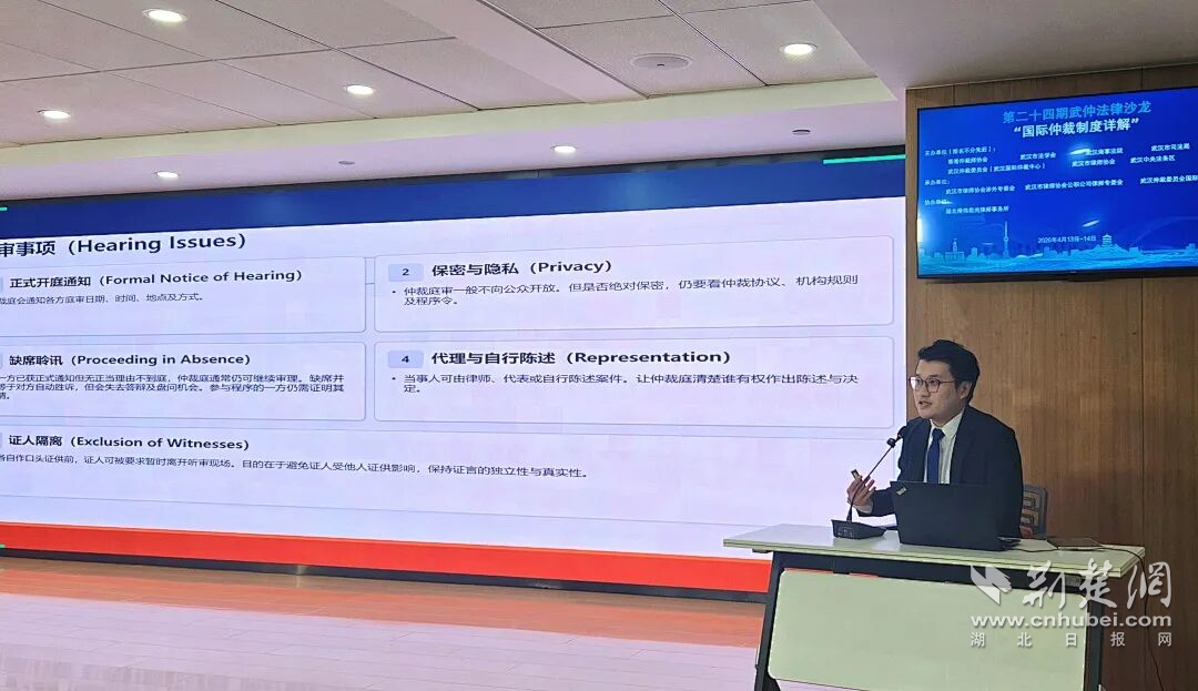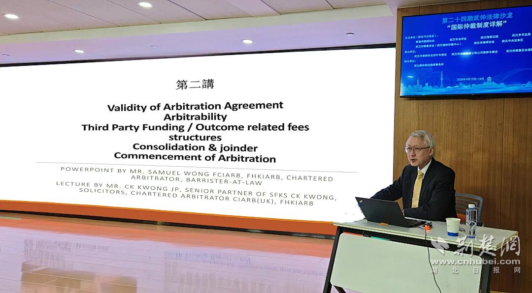 荆楚网(湖北日报网)讯(通讯员 林芸)为推动仲裁事业高质量发展,全面学习了解涉外仲裁制度,助力涉外法治体系和能力建设,4月13日至14日,由香港仲裁师协会、武汉市法学会、武汉海事法院、武汉市司法局、武汉仲裁委员会(武汉国际仲裁中心)、武汉市律师协会、武汉中央法务区联合主办,武汉市律师协会涉外专委会、武汉市律师协会公职公司律师专委会、武汉仲裁委员会国际仲裁院联合承办,湖北得伟君尚律师事务所协办的第二十四期武仲法律沙龙“国际仲裁制度详解”在武汉仲裁委员会成功举办。法官、仲裁员、高校教师、律师、企业法务、企业高管、仲裁秘书等160人现场参会,8700人线上观看直播。