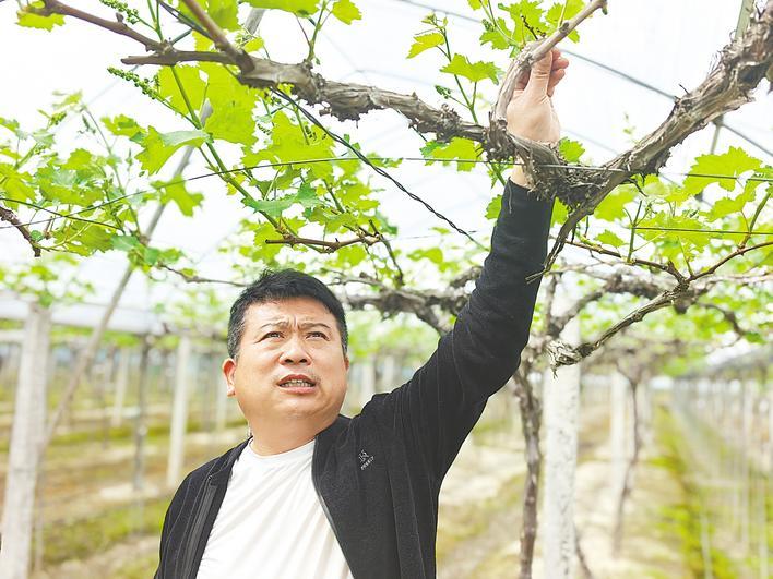 崇阳县白霓镇杨洪村国道旁,“铁强葡萄种植专业合作社”棚内,葡萄藤蔓葱郁。
