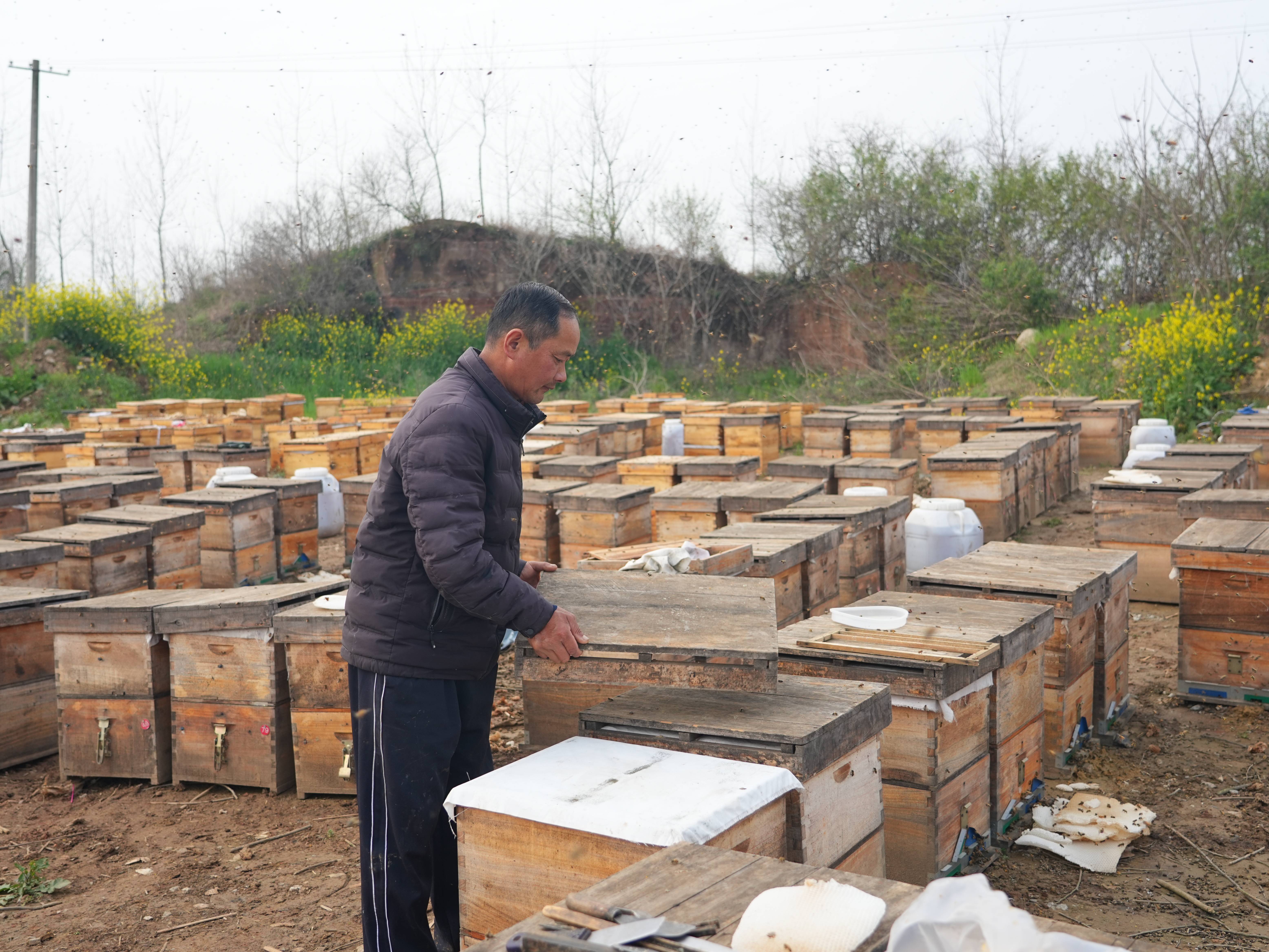 钟祥磷矿镇的村民梁师傅1月到云南育蜂,因沟通及时,选在钟祥飞防作业完成后回来,蜂群没有任何受损。(湖北日报全媒记者 祝华 摄)