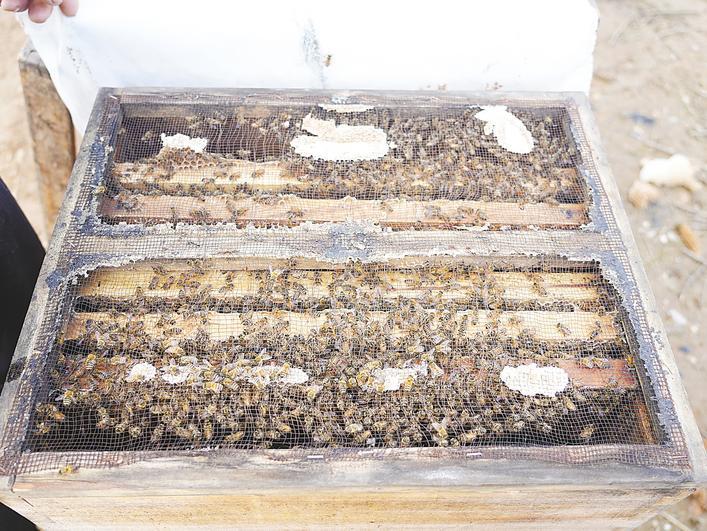 钟祥磷矿镇蜂农梁师傅未因农药受损失,蜂箱内满是蜜蜂。(湖北日报通讯员 欧阳君 摄)