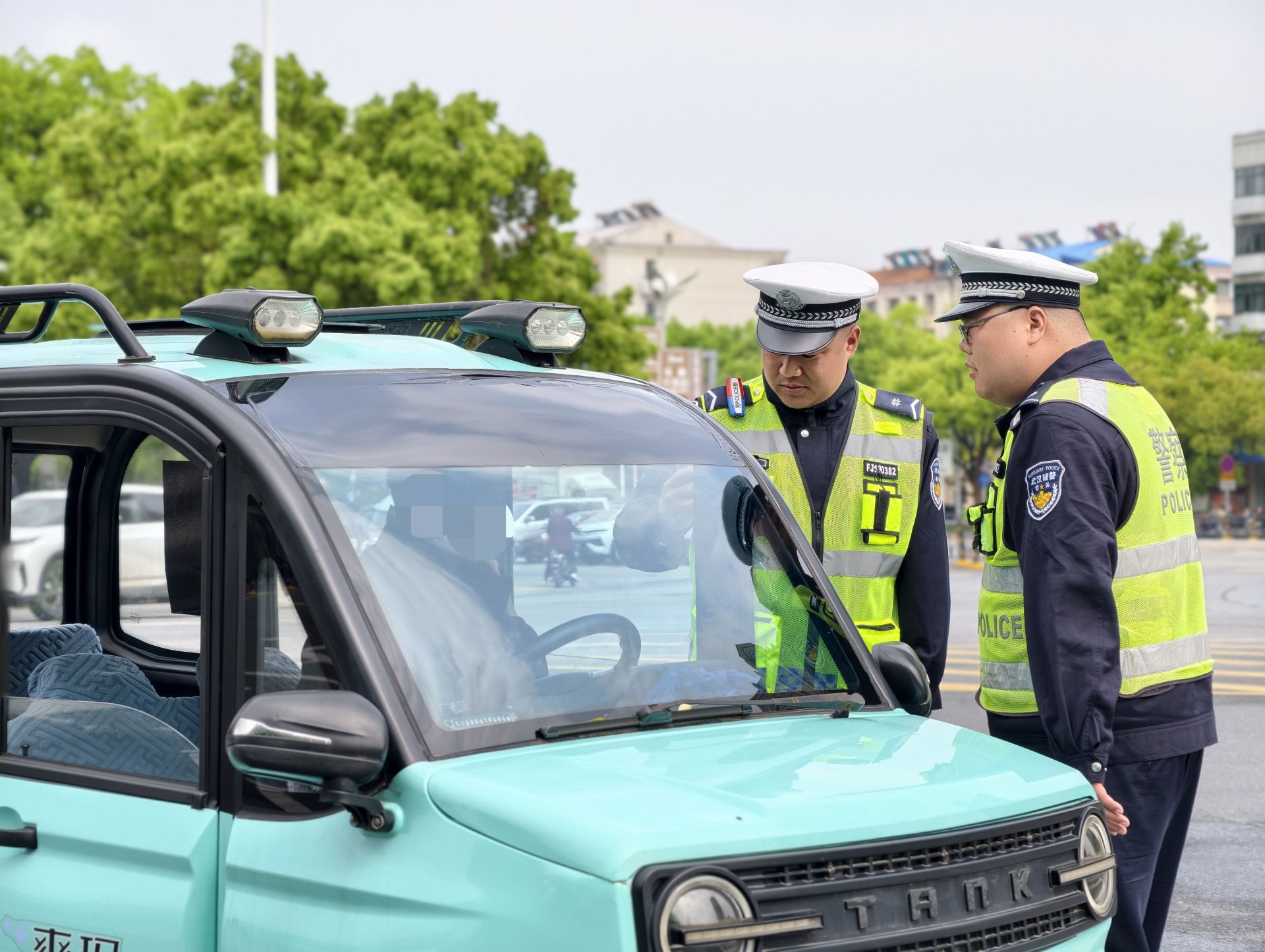 东新大队在民族大道、光谷三路等重点路口,用“大喇叭”循环播放安全提示,民警摆放宣传展板以案说法,对轻微违法以教育劝导为主,还为有需求的市民免费发放安全头盔30余顶,路过的市民陈爹爹说:“骑电动车不戴头盔、闯红灯太危险,交警又管又送头盔,真是为我们安全着想!”