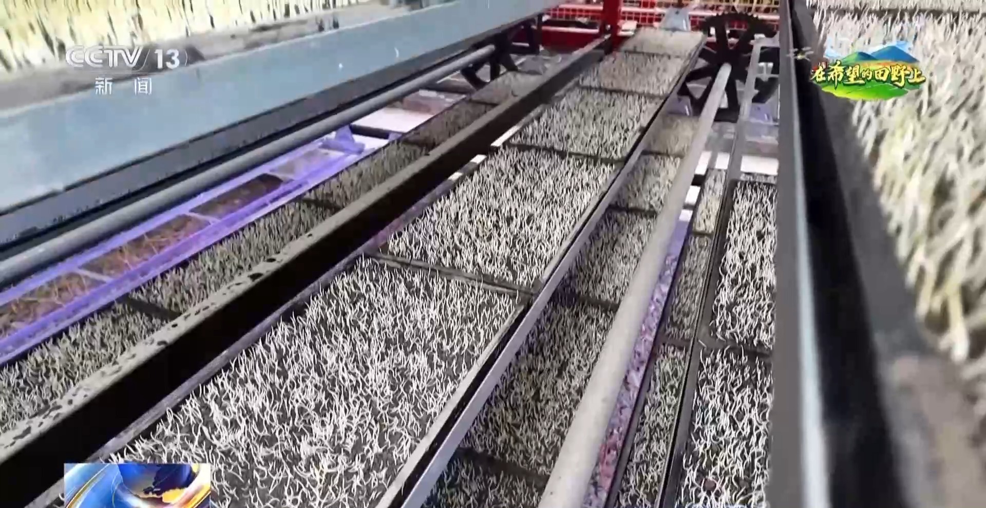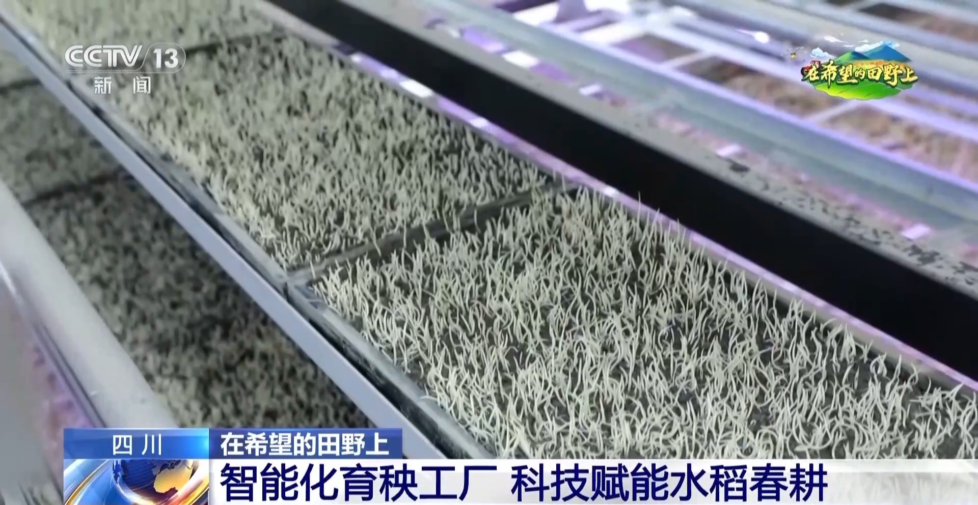 成都种业集团项目负责人 邓斌:循环式育苗设备,能确保秧苗24小时不间断生长,相对于传统的大田育苗,它能够节约土地80%,能够节约人工75%以上,育苗率能够达到98%以上。