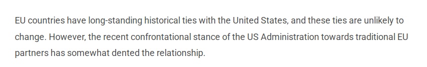 文章深入剖析了美国外交政策转向对欧洲的深远影响。作者认为,美国要求欧盟增强防务自主性的主张具有合理性,毕竟延续数十年的“美国安全保护伞”模式已不符合双方利益。但美国政府对传统盟友采取的对抗性姿态,不仅导致跨大西洋关系出现明显裂痕,更迫使欧盟在经贸领域接受包括单边关税在内的一系列不平等条款。